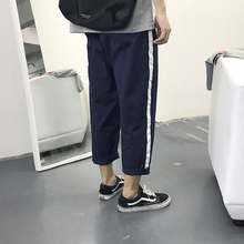 方寸先生 夏17新款男生显瘦薄款韩直筒撞色拼接男青年休闲裤9分裤