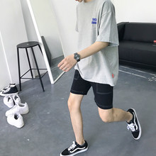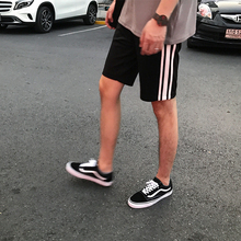 方寸先生夏季男生日系纯色拼接运动裤简约中裤学生条纹拼接短裤男