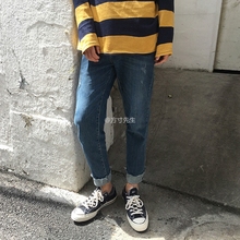 2月9号开业春装小脚九分裤韩版直通修身磨毛潮男牛仔裤个性猫须潮