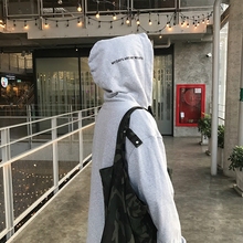 方寸先生新款宽松春假两件叉开卫衣男落肩字母刺绣蝙蝠连帽卫衣外