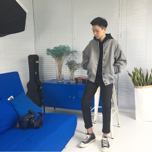 2月9号开业春季男士棒球服呢料蝙蝠袖落肩夹克男士情侣外