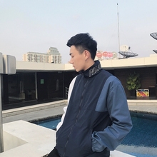 方寸先生春新款日系男生外套刺绣字母撞色拼接夹克冲锋衣男士外套