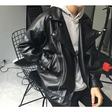 方寸先生男士皮衣黑色短款pu皮外套简约宽松机车翻领情侣皮夹克