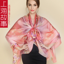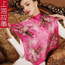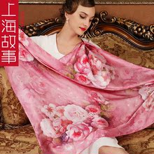 上海故事超大电喷真丝大方巾 丝巾桑蚕丝真丝围巾 女春秋披肩
