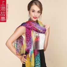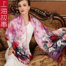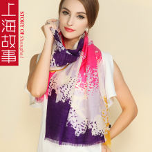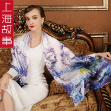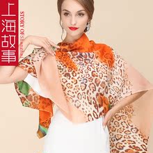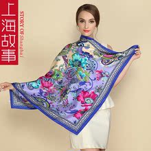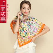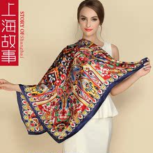 上海故事丝巾秋季百搭新款2016真丝喷绘大披肩民族风桑蚕丝长围巾
