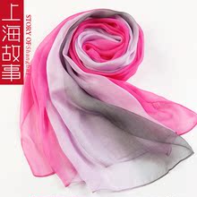 上海故事2016新款雪纺丝巾女 长款渐变色沙滩春夏季两用披肩围巾