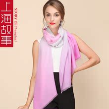 上海故事 新款渐变澳洲羊毛围巾女式披肩两用春秋冬季仿羊绒