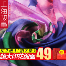 上海故事印花围巾2016新款冬季韩版超大长款百搭缎面丝巾秋季披肩