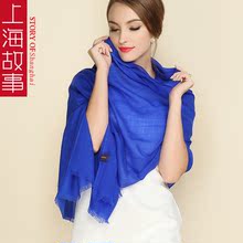 上海故事 新款羊毛围巾女士春秋冬季60支澳洲羊毛苏围脖两用披肩
