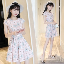 夏装韩版小清新碎花连衣裙夏天学生高腰显瘦短袖A字型短裙夏女装