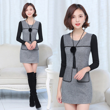 2017春秋季女装时尚套装裙子修身两件套春款长袖加厚毛呢连衣裙潮