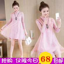 蕾丝连衣裙春秋款2017年新款时尚女韩版网纱修身显瘦A字裙子春款