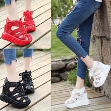 凉鞋女夏高跟2017新款时尚百搭罗马鞋镂空韩版厚底内增高坡跟凉鞋