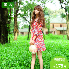 星诺2017春夏季新款森女系裙子复古文艺小清新碎花大摆雪纺连衣裙