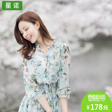 星诺2017春装新款长裙文艺小清新裙子森女系印花长袖衬衫连衣裙
