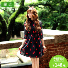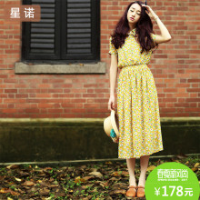 星诺2017春夏季新款裙子复古文艺娃娃裙小清新森女碎花雪纺连衣裙