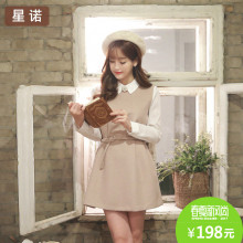 星诺2017春装新款韩版复古文艺小清新学院风娃娃领毛呢连衣裙春秋