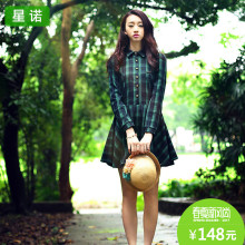 星诺正品2016春秋夏季新款长袖复古文艺范A字衬衫显瘦格子连衣裙