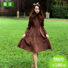 星诺2017春装新款复古文艺范森女系小清新中长款长袖连衣裙春秋