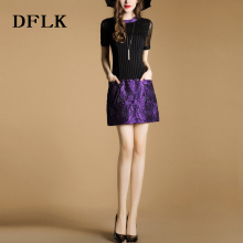 2017春夏款女装短袖通勤淑女提花拼接直筒连衣裙显瘦包臀A字裙 潮