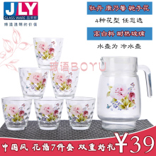 中国风花语杯冷水壶玻璃耐热茶壶茶具凉水壶冷水壶玻璃凉水杯套装