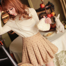 韩版秋冬装复古高腰半身裙蓬蓬裙蕾丝边公主蝴蝶结毛呢裙褶皱短裙