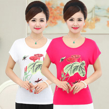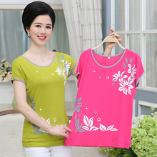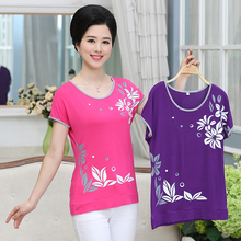 中年人夏装女士短袖t恤40-50岁中老年纯棉t恤大码宽松妈妈装上衣