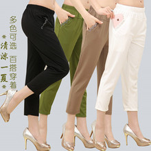 中老年九分裤女夏松紧高腰中年人裤子女40-50岁妈妈夏装薄款裤子