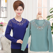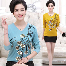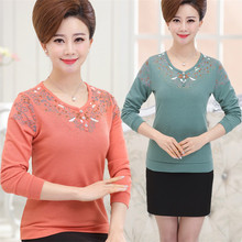 中年人春装女40-50岁t恤针织衫套头宽松长袖秋衣外穿妈妈春秋毛衫