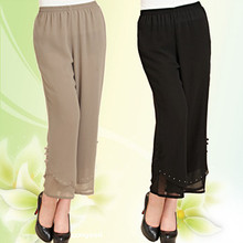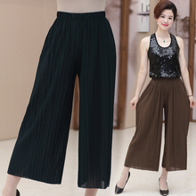 中年女裤子夏季雪纺九分裤松紧腰阔腿裤40-50岁妈妈夏装裤子