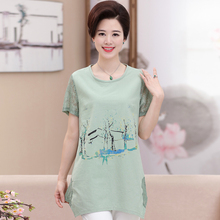 天天特价时尚妈妈夏装上衣女40-50岁中年人棉麻短袖t恤中长款宽松