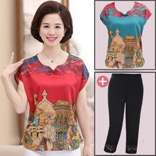 2017新款妈妈夏装套装短袖上衣t恤40-50岁中年女装休闲时髦两件套
