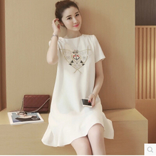 2017夏装韩版孕妇连衣裙A字大码娃娃裙气质五分袖绣花中长款上衣