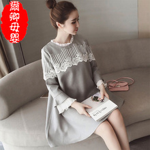 孕妇秋装2017宽松蕾丝拼接时尚孕妇春装娃娃裙韩版A字孕妇连衣裙