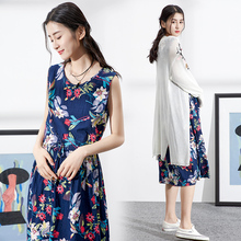 孕妇夏装套装2017新款韩版开衫外套宽松显瘦长款吊带裙两件套潮妈