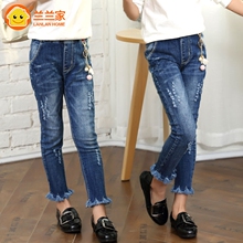 女童牛仔裤春秋2017童装阔腿裤儿童韩版直筒裤中大童破洞休闲裤潮