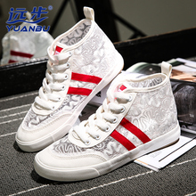 远步春秋季高帮帆布鞋女蕾丝镂空单鞋透气运动板鞋女低帮休闲鞋