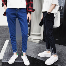 港仔潮流时尚男装牛仔裤男秋装韩版小脚裤弹力修身休闲长裤男裤子