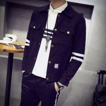 春秋季韩版男装牛仔外套青少年修身夹克卫衣日系复古做旧牛仔衣服