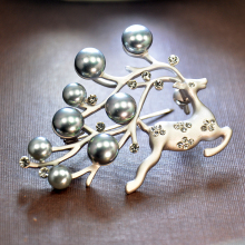 三八节礼物麋鹿胸针大衣配饰天然淡水珍珠简约梅花鹿百搭别针女