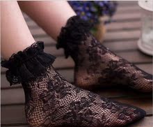 日系洛丽塔黑色花边短袜女春可爱蕾丝水晶丝袜公主堆堆中筒袜子