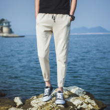夏季九分裤男修身 日系潮棉麻休闲裤男小脚哈伦裤运动9分裤束脚裤