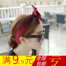 韩国发饰 丝绒兔耳朵蝴蝶结发带头箍 发箍饰品运动头带可随意造型