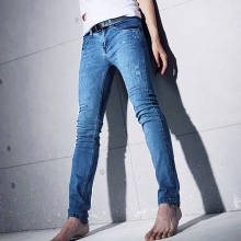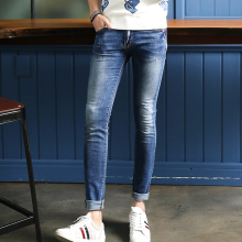 2017春季新款 韩版做旧时尚蓝棉弹力 修身牛仔裤男 潮铅笔小脚裤