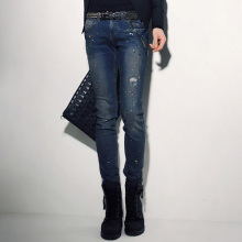 包邮 2017春季韩版男装修身青蓝色白点弹力牛仔裤小脚铅笔裤子
