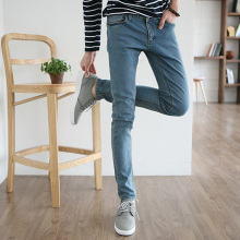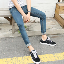 2017潮男春装 蓝色牛仔裤新款男士修身小脚裤男 韩版长裤