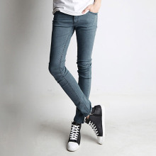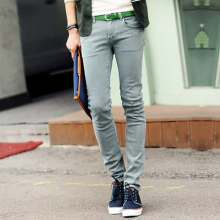 2017春季新款 潮男韩版修身弹力银灰色男小脚牛仔裤 子 紧身裤男