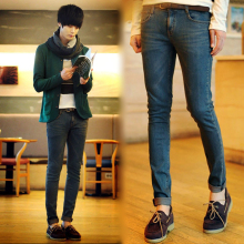 2017春季厚款韩版潮男显瘦深蓝色牛仔裤弹力铅笔裤修身小脚裤子