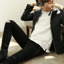 2017春季男装牛仔裤 修身黑色韩版潮休闲微弹铅笔裤小脚裤子