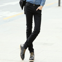 2017春季韩版潮男裤纯黑色牛仔裤男 修身弹力男式铅笔小脚裤子